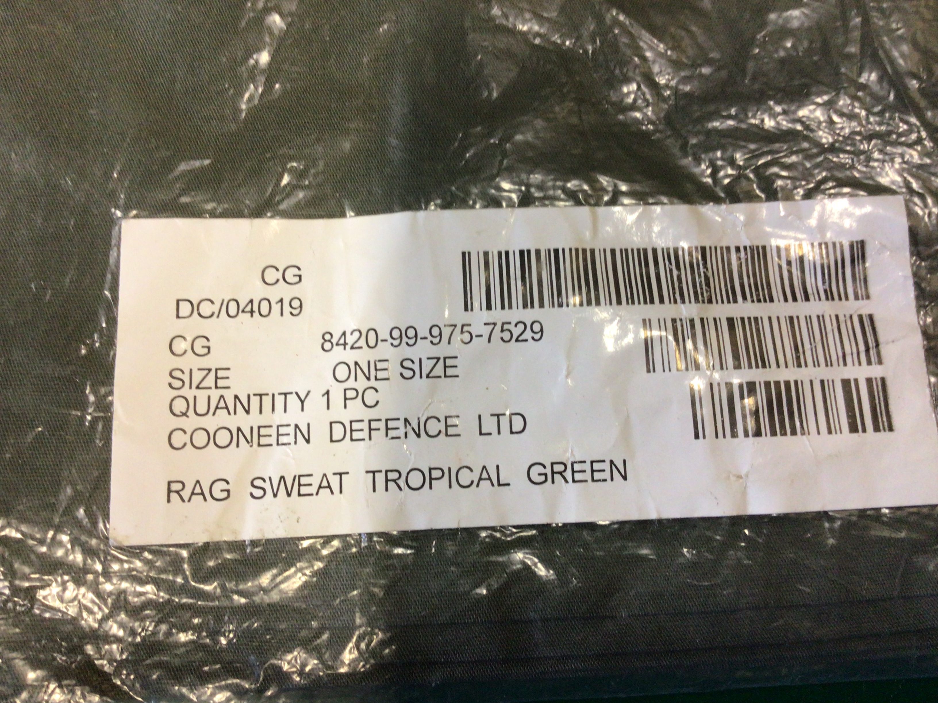 British Army Rag, sweat, tropical green.